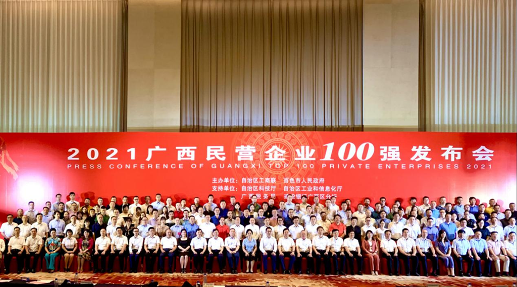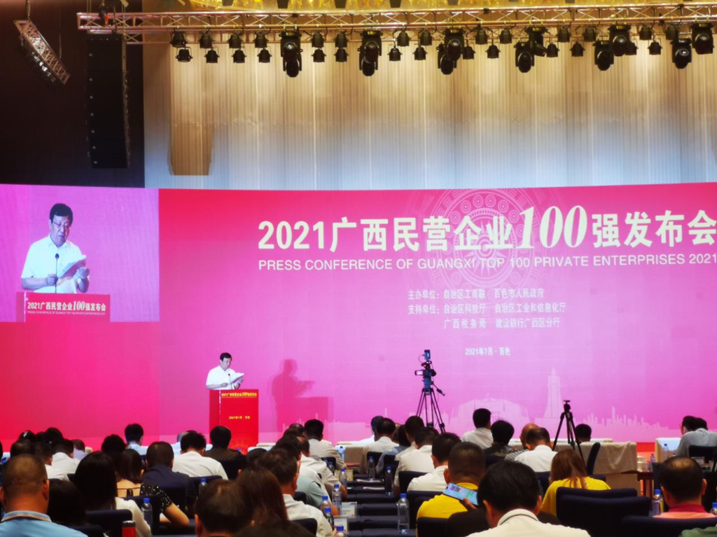 7月23日上午,2021廣西民營(yíng)企業(yè)100強(qiáng)發(fā)布會(huì)在百色飯店一樓國(guó)際會(huì)議中心舉行。本次發(fā)布會(huì)由廣西工商聯(lián)、百色市人民政府主辦,廣西科技廳、廣西工業(yè)和信息化廳、廣西稅務(wù)局、建設(shè)銀行廣西區(qū)分行協(xié)辦。自治區(qū)人大常委會(huì)副主任趙樂(lè)秦、自治區(qū)副主席費(fèi)志榮,自治區(qū)政協(xié)副主席、工商聯(lián)主席磨長(zhǎng)英,中共百色市委書(shū)記周異決,百色市市長(zhǎng)葛國(guó)科等領(lǐng)導(dǎo)出席活動(dòng),我集團(tuán)董事長(zhǎng)鄧亞保應(yīng)邀出席。