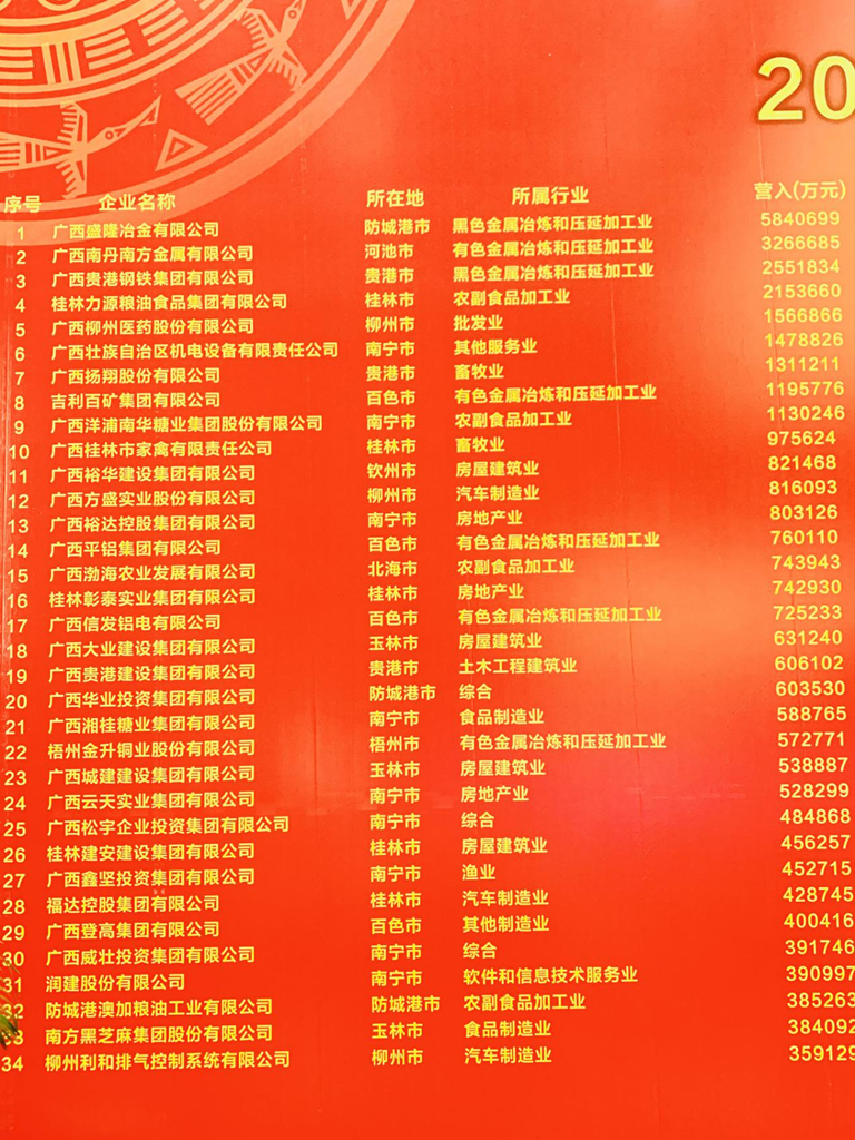 (民營(yíng)企業(yè)100強(qiáng)榜單部分排名)